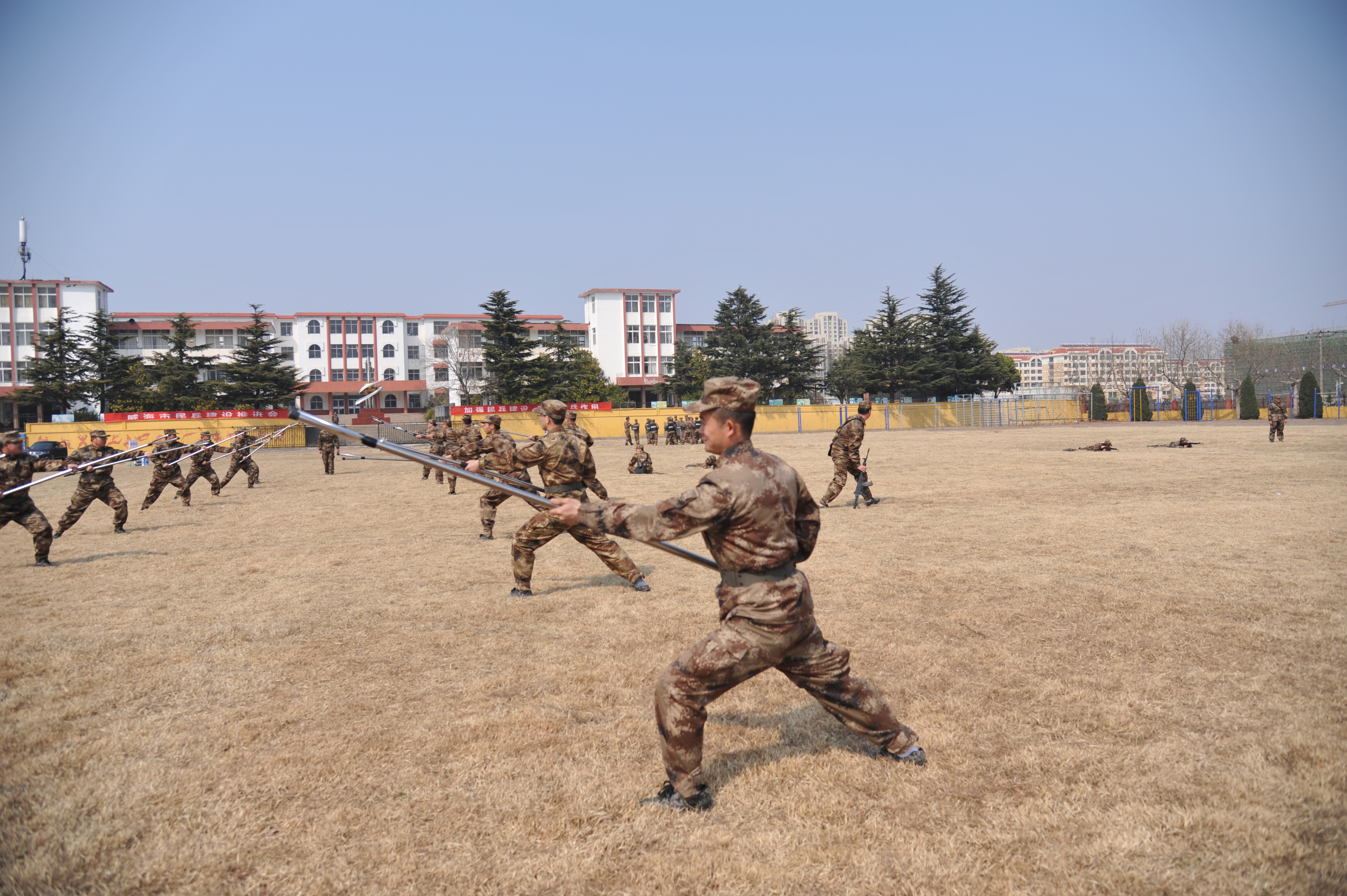 根據(jù)政府辦公室通知要求,為積極響應(yīng)威海軍分區(qū)關(guān)于我市民兵建設(shè)推進(jìn)總體部署,全面提升集團(tuán)公司在冊(cè)民兵的軍事技能和應(yīng)急處置能力,3月24日至4月2日,集團(tuán)公司按比例抽調(diào)黨員干部、退役士兵及青年職工60人參加民兵軍事訓(xùn)練。此次訓(xùn)練為期10天,以應(yīng)急防暴、海岸巡邏、罪犯抓捕、消防滅火、戰(zhàn)術(shù)隊(duì)形、旗語信號(hào)和實(shí)彈射擊等為訓(xùn)練內(nèi)容,采取民兵應(yīng)急連編制,開展集中脫產(chǎn)訓(xùn)練。