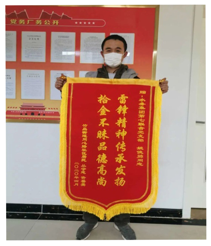 4月22日,同心路社區(qū)負(fù)責(zé)人陪同市民許善英大姨,將一面“拾金不昧品德高尚,雷鋒精神傳承發(fā)揚(yáng)”的錦旗和一封親手書寫的感謝信送到市水務(wù)集團(tuán)黨委,對(duì)集團(tuán)黨委第七聯(lián)合黨支部黨員姚俊帥同志拾金不昧的行為表示真摯感謝。原來,姚俊帥在參加黨員志愿服務(wù)活動(dòng)的返回途中,撿到了許大姨的金手鐲,經(jīng)過多方查找,找到了失主許善英。這個(gè)手鐲她佩戴多年,不僅價(jià)值不菲,更具有紀(jì)念意義,有著很深的感情。“拾金不昧,特別是這么貴重的物品,以前只是在新聞里看到,現(xiàn)在自己親身體驗(yàn)到這種正能量,我心里特別激動(dòng),真的非常感謝水務(wù)集團(tuán)黨委培養(yǎng)出這么好的黨員,這么樸實(shí)的職工”,許大姨和社區(qū)負(fù)責(zé)人當(dāng)著公司有關(guān)領(lǐng)導(dǎo)的面贊不絕口。