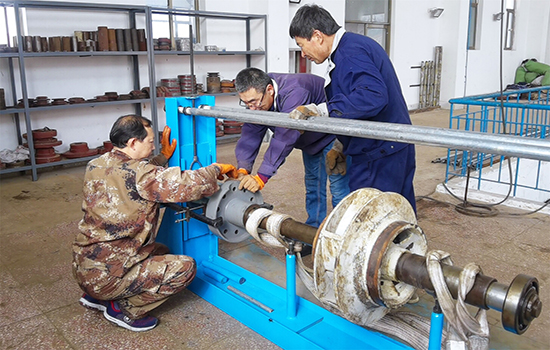 以往,水泵的零部件拆卸靠的是“蠻力”,動輒千斤的水泵更換部件時需要5、6個人相互配合并使用鐵錘敲打,因為操作困難,維修人員容易意外受傷。